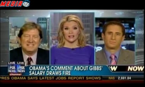 Megyn Kelly: Fox News’ Megyn Kelly moderated a debate today, with radio host Jason Lewis and Democratic Strategist Bernard Whitman , over President Obama’s innocuous remark about Robert Gibbs’ “relatively modest pay,” and the “outrage” it has spawned.