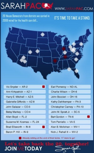 At last report, Congresswoman Giffords was still alive but in surgery… UPDATE at 1/8/11 12:13:01 pm: Giffords was one of the Democrats listed on this map/enemies list posted by Sarah Palin’s PAC, with gunsights indicating the location of their enemies: According to reports on Twitter, Palin has deleted this map and others like it from her Face...
