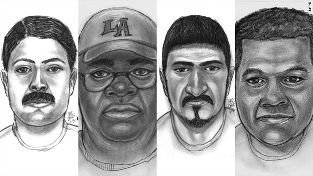 Los Angeles police officers recognized the men after detectives went public with artist sketches and photos of four men on Thursday, Los Angeles County Sheriff's Sgt. Dan Scott said. As many as 10 suspects could have been involved in the assaults.